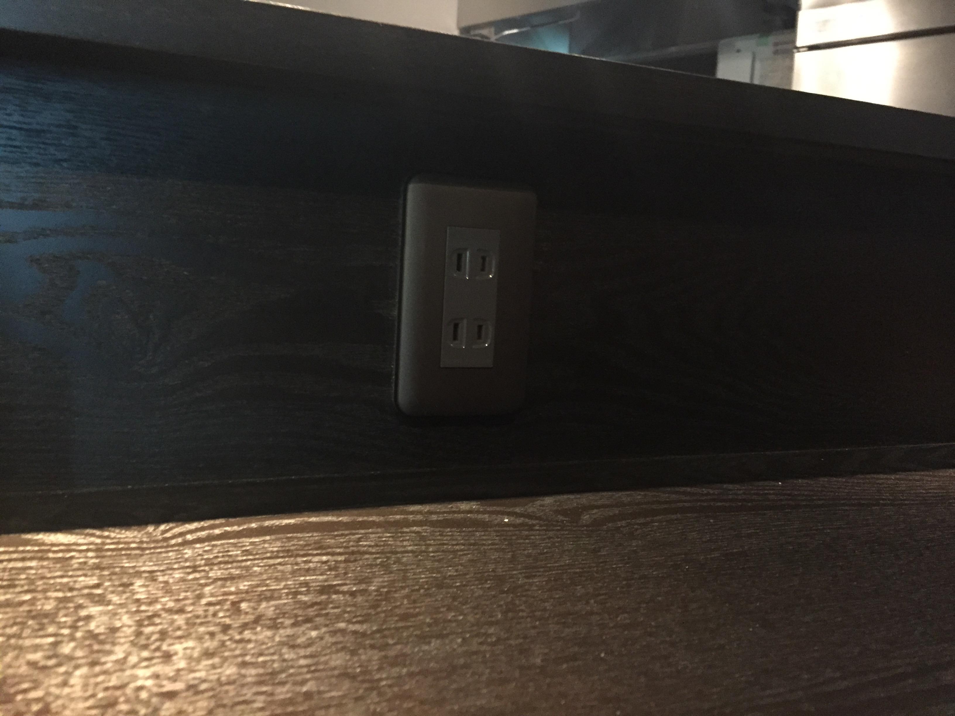 パナソニックのブラウンのコンセント。非常に高いですがカウンターとのマッチングが最高ですね